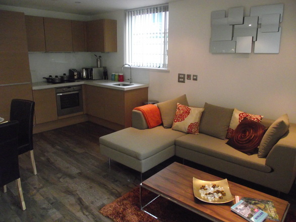 It offers a reception hallway with intercom which lead onto the open plan living space with a fully fitted kitchen which incluses and integrated oven, hob, fridge freezer.